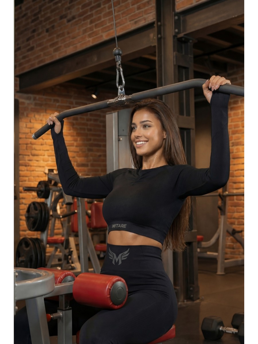 Dieses feminine Top vereint Stil und Funktionalität – es schmiegt sich an die Figur, betont die Taille und bietet höchsten Tragekomfort. Der hohe Ausschnitt und die Schulterausschnitte verleihen ihm einen modernen Charakter, und das flexible, atmungsaktive Material eignet sich sowohl für Training als auch für den Alltag.
