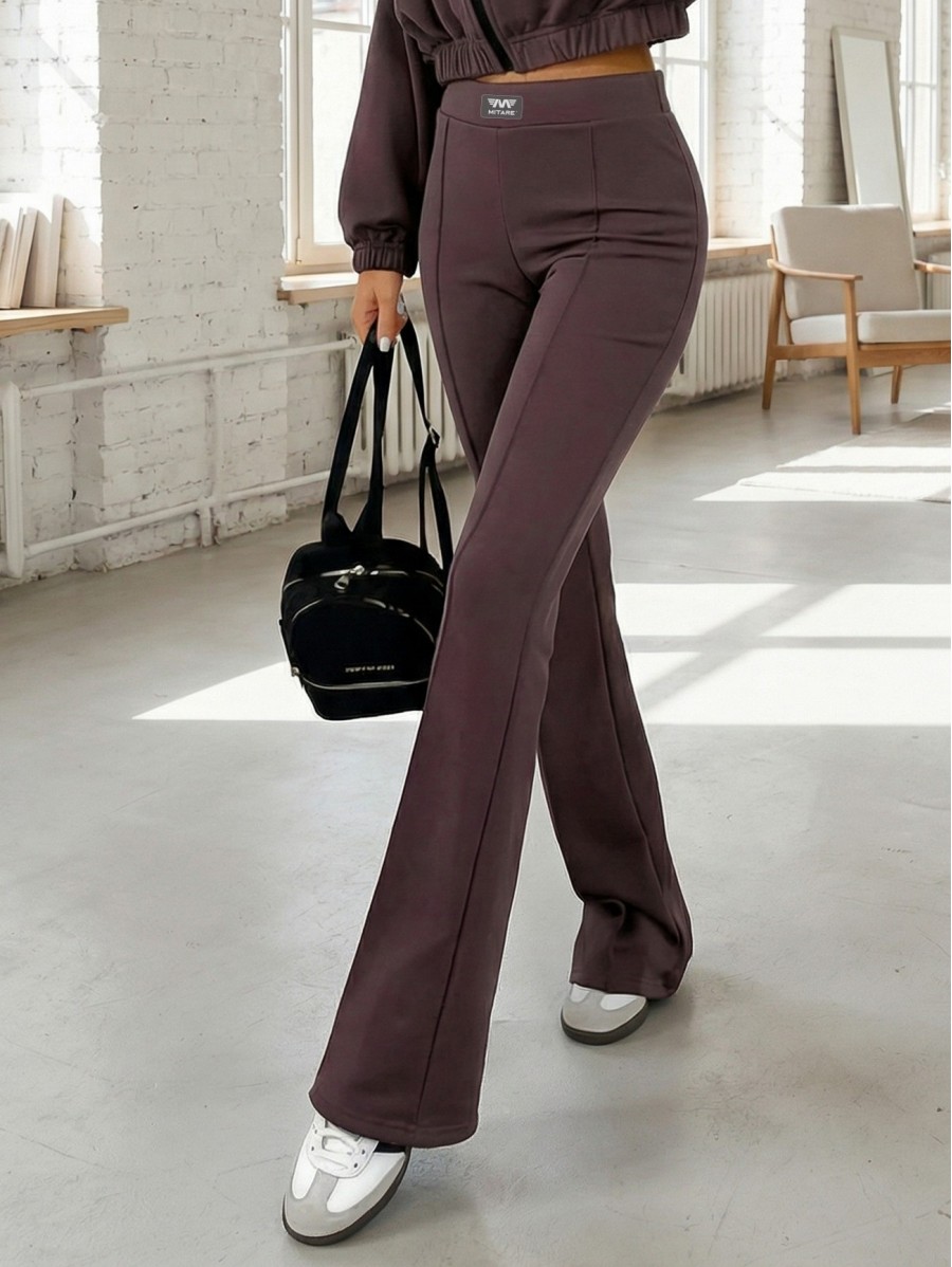 Der hohe Bund mit elastischem Bund sorgt für perfekten Sitz, während die ausgestellten Beine die Beine optisch verlängern.